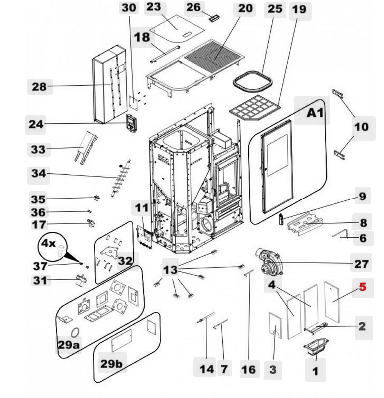 Origineel Zijsteen rechts voor de Pelletkachel Haas-Sohn HSP 8 Home 445.08
