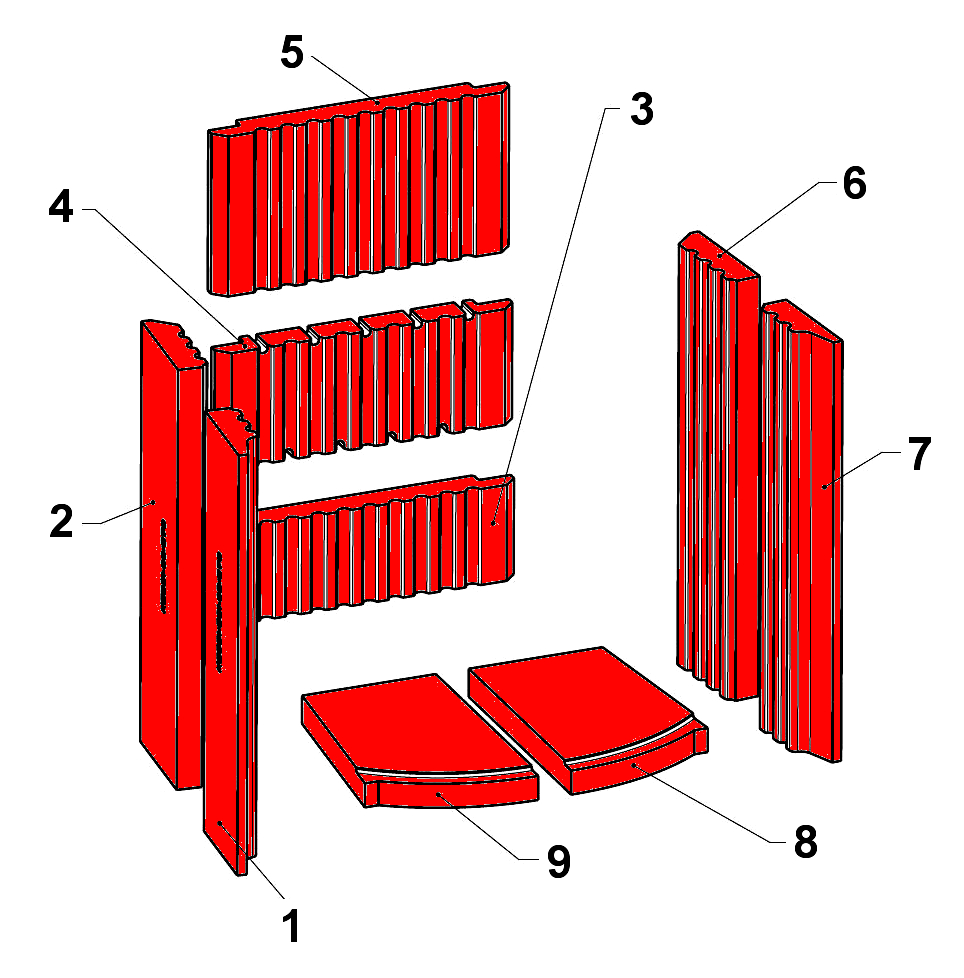 binnenwerk / verbrandingskamervoering / brandkamersteen / verbrandingskamerstenen / bakstenen bekleding / vuurvaste stenen / hittebestendige kachelplaten