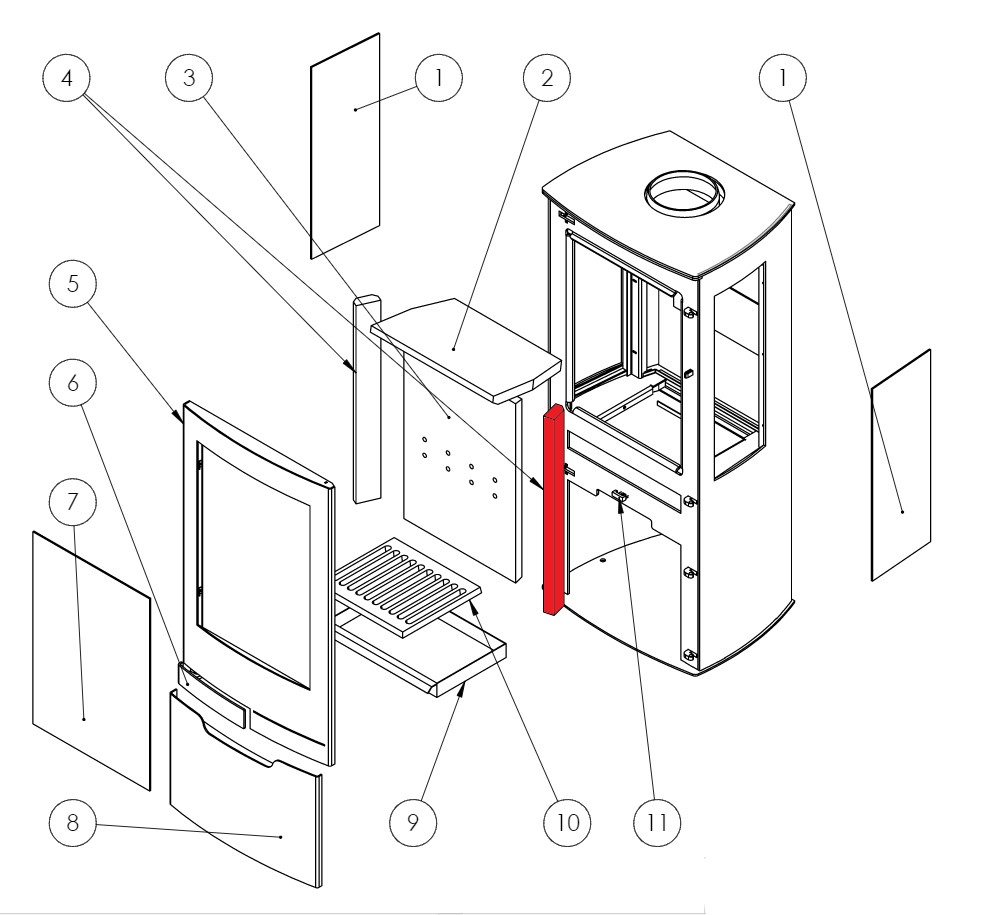 Origineel Zijsteen rechts voor de Houtkachel Panadero Zinc