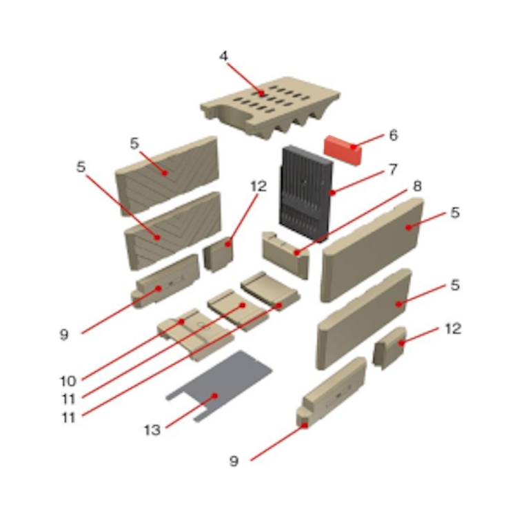 Achterste muur steen / Brandkamersteen / Stookruimtesteen / steen voor binnenwerk / binnensteen
