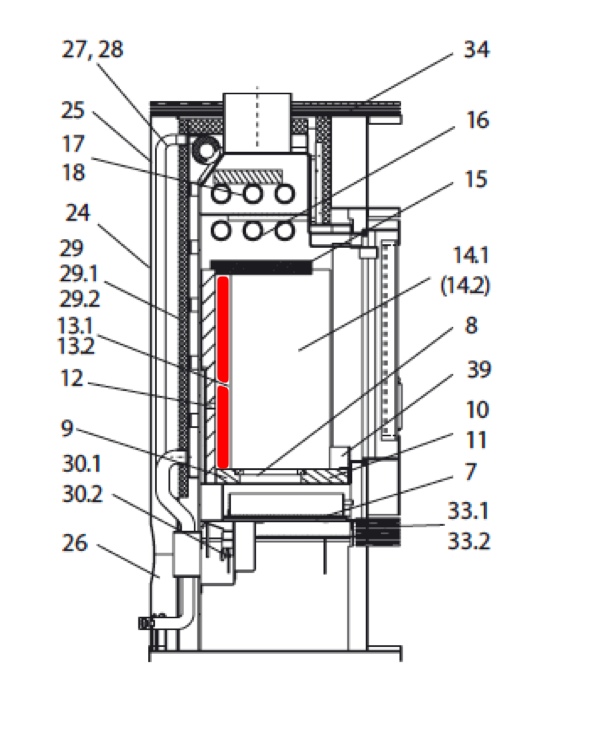 Origineel Zijsteen links achteraan voor de Houtkachel Wodtke Momo KK50-10 RW
